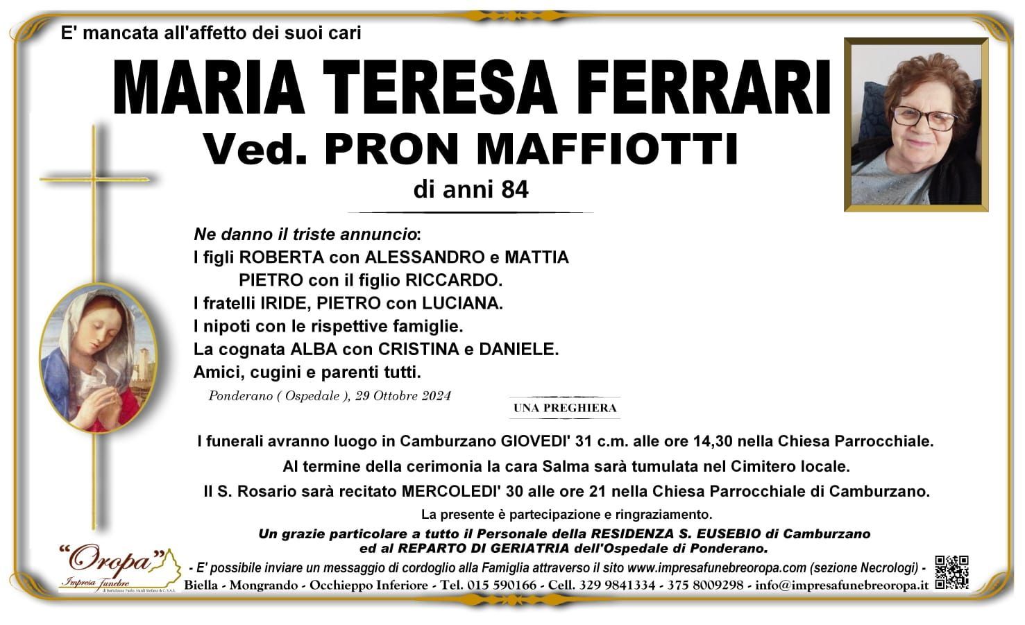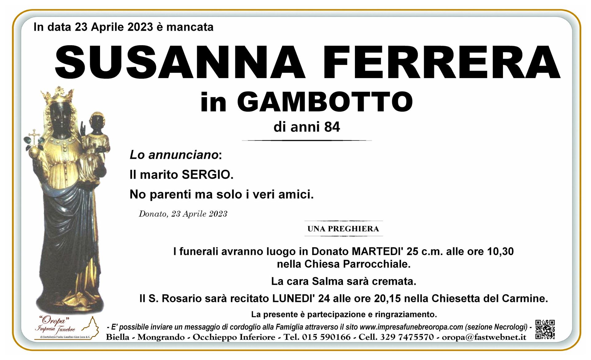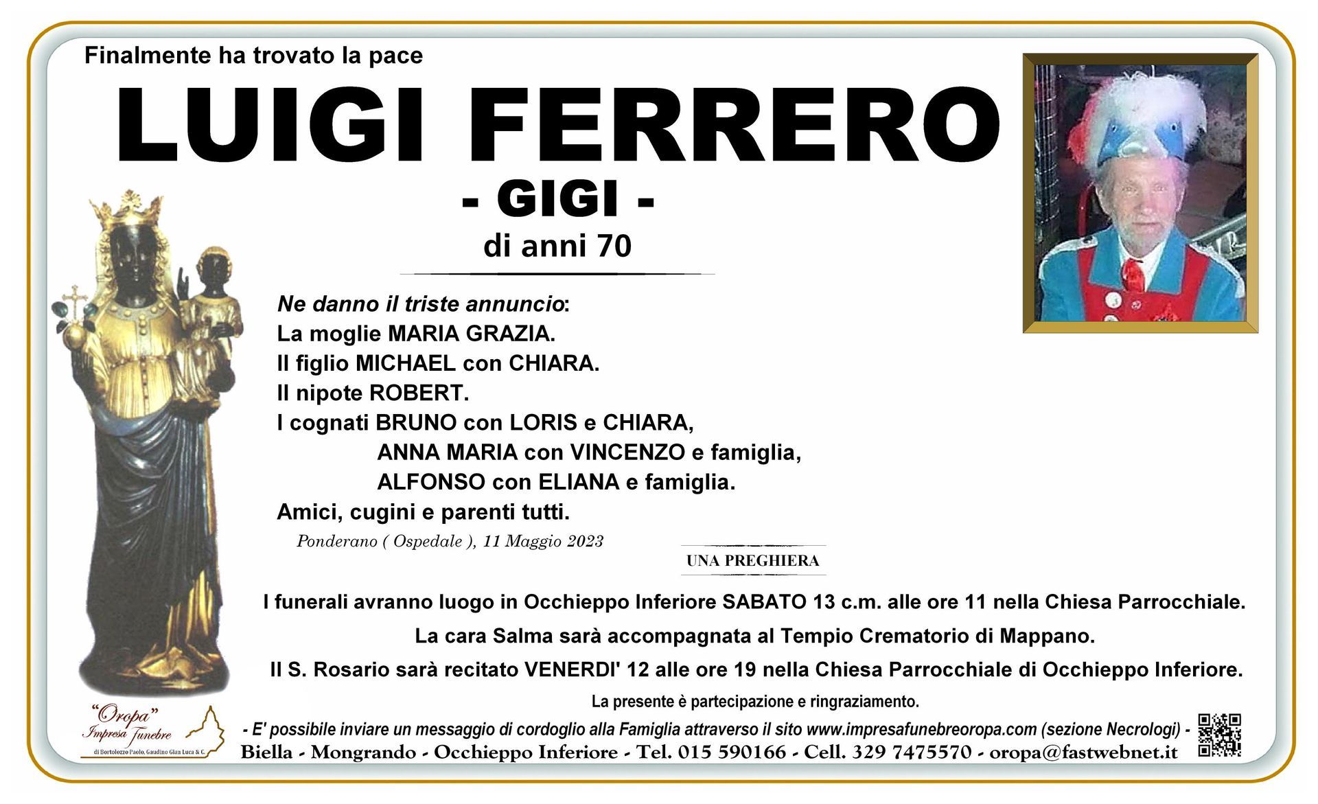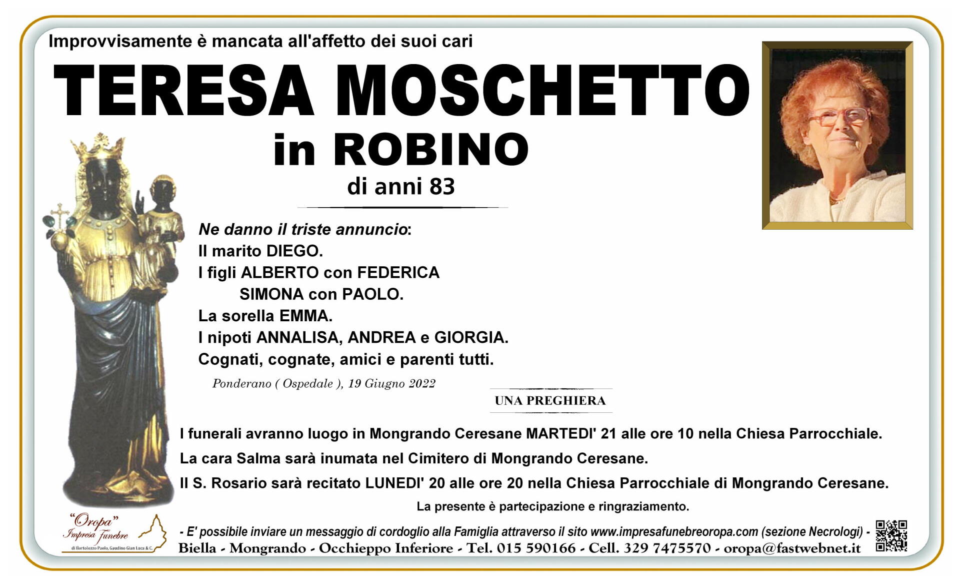 Per inoltrare le tue condoglianze, compilate il form sottostante in tutti i suoi campi: il personale di Impresa Funebre Oropa di Biella provvederà a recapitare il tuo messaggio di cordoglio alla famiglia del defunto.