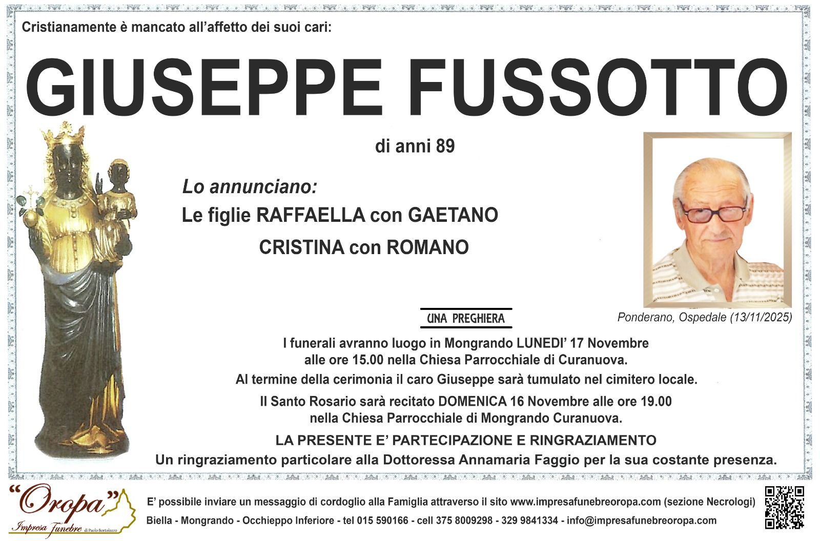 servizi funebri a Biella, l'Impresa Funebre Oropa offre anche l’affissione di annunci funebri e la comunicazione di necrologi.